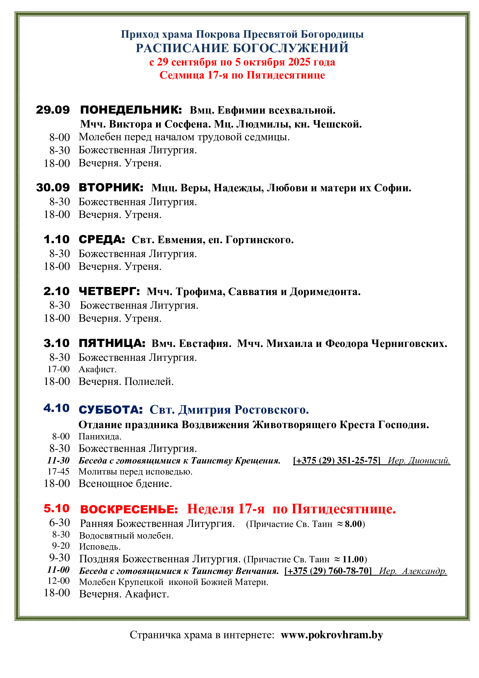 1 октября день памяти Прославление прп. Евфросинии Суздальской, в миру Феодулии (1698), Молченской (1405), Целительница (XVIII), и Старорусской икон Божией Матери.