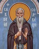Преподобный Савватий Соловецкий пришел в Кирилло-Белоезерский монастырь в 1396 году, где принял иноческий постриг. Там он подвизался долгое время, беспрекословно исполняя все послушания. Смирение, кроткая любовь к братии и строгая жизнь отличали преподобного Савватия среди других подвижников. Вскоре он стал тяготиться вниманием и уважением братии и приходивших мирян и, узнав, что на Ладожском озере есть каменистый остров Валаам, решил переселиться туда. Тяжко скорбя, простилась братия Кирилло-Белоезерского монастыря со святым старцем. На Валааме мирская слава также стала беспокоить смиренного старца. Между тем преподобный узнал, что на севере есть необитаемый Соловецкий остров; он стал просить у игумена благословения поселиться там в уединении. Однако игумен и братия не пожелали расставаться со святым старцем. По указанию Божию преподобный Савватий ночью оставил Валаамскую обитель и направился к берегам Белого моря. Когда он узнал от местных жителей, что остров находится в двух днях плавания, что на нем много озер и что на острове никто не живет, он еще больше возгорелся желанием там поселиться. Удивленные жители спрашивали убеленного сединами подвижника, как он будет там жить и чем питаться. "У меня такой Владыка, - отвечал преподобный, - Который и дряхлости дает силы свежей юности, и голодных питает досыта".