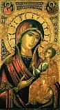 Перевод: Сегодня воссиял вместе со Светом Воскресения свет почитаемой иконы Твоей, оба света с радостью празднуя, взываем: «Сохрани рабов Твоих благодатью, Владычица».