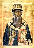 В годи́ну лю́тых искуше́ний/ многострада́льному И́ову подо́бяся,/ в же́ртву жи́ву и непоро́чну/ себе́ Христу́ прине́сл еси́,/ обрати́в па́ству к покая́нию,/ терпели́ве И́ове святи́телю,/ моли́ и нам за вся благодари́ти Го́спода/ и всегда́ воздава́ти// сла́ву Бо́гови.