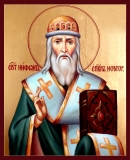 Ре́вности дре́вних оте́ц/ в тве́рдом и́стинных догма́т хране́нии подо́бяся,/ крепкоу́мне Ни́фонте,/ не восхоте́л еси́ восхи́тившему самово́льне престо́л Митропо́лии Кли́му сослужи́тель бы́ти,/ избра́нному же на се от всех, поко́рся,/ священноле́пне с ним служи́л еси́/ и, жизнь свою́ сконча́в,// обре́л еси́ безконе́чное Ца́рство Христо́во.