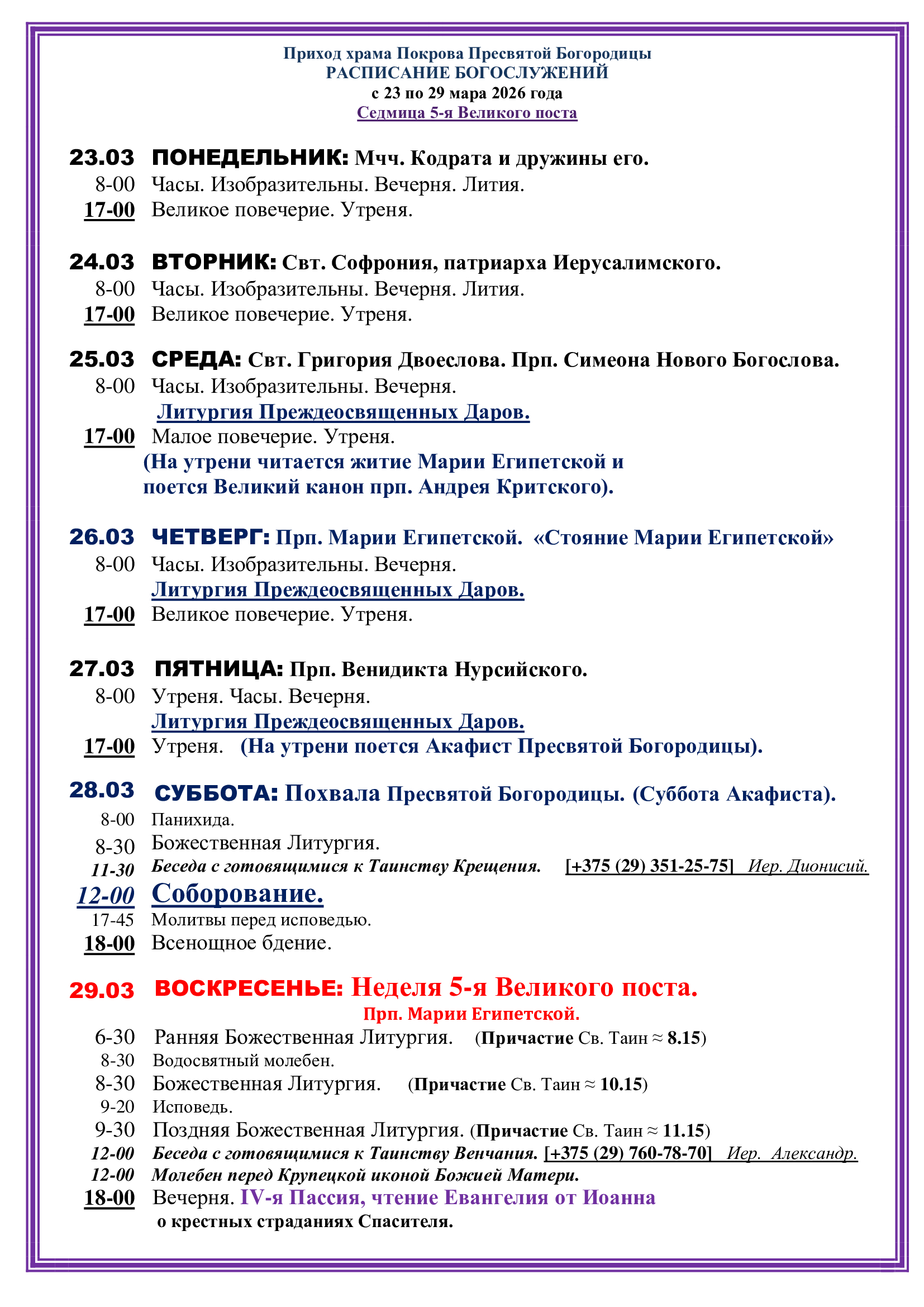 Жите́йское мо́ре по́двиги ва́шими невла́жно проше́дше,/ кре́пкаго приста́нища Христо́ва дости́гли есте́,/ иде́же Престо́лу Пресвяты́я Тро́ицы предстоя́ще,/ Ники́форе и Генна́дие богому́дрии,/ Влады́ку всех моли́те/ мир вселе́нней дарова́ти// и душа́м на́шим ве́лию ми́лость.