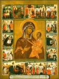 Перевод: Получив Божественное откровение свыше, ты поспешно удалился из центра волнений житейских и, уединившись, преподобный, получил силу творить чудеса и дар пророчествования, богатства и супруги лишившись.