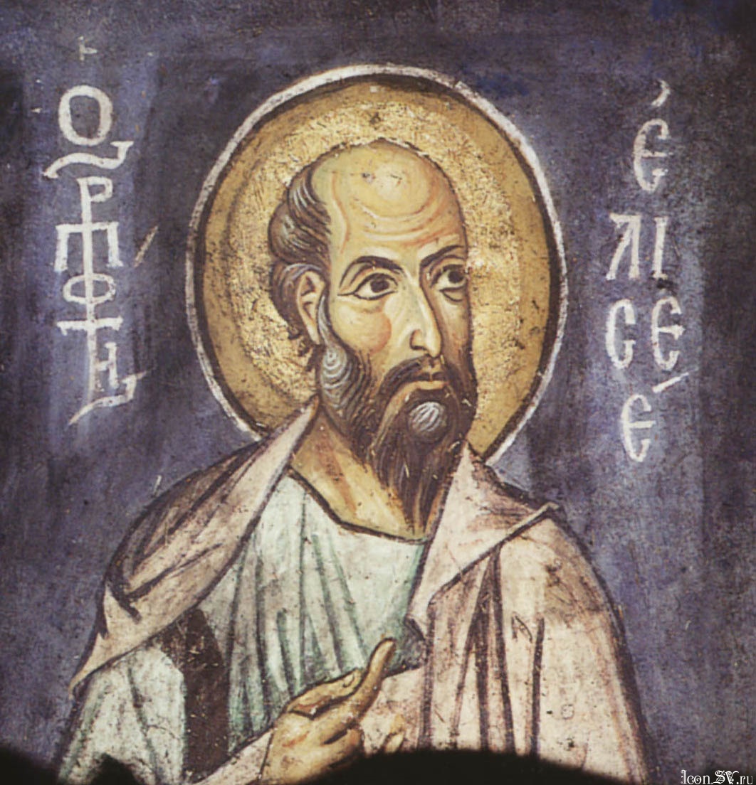 Пророк Елисей[1], чье имя означает «Бог есть спасение», был сыном богатого земледельца из Авел-Мехолы в долине р. Иордан. Однажды, когда он пахал двенадцатью парами быков, подошел пророк Илия (20 июля) и бросил ему свою милоть[2]. Это означало, что пророк принимает Елисея в ученики и обещает передать ему пророческий дар. Елисей заколол пару волов и, используя их упряжь, совершил всесожжение Господу. Отказавшись от всего имущества и не попрощавшись с родными, он пошел за Илией и стал его преданным учеником.