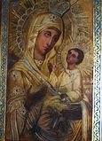 Икона Одигитрии написана на четырех досках, соединенных вместе: из них средние сделаны из кипариса, остальные из березы. В 1864 году чудотворная икона была подновлена.