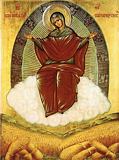Пречи́стая Де́во Мари́е, Ма́ти Царя́ небеси́ и земли́,/ благоутро́бно призира́еши на лю́бящих Сы́на Твоего́, Христа́ Бо́га на́шего,/ и тружда́ющихся во и́мя Его́ ве́чнаго ра́ди спасе́ния,/ и подае́ши и́м вся́ оби́льно к наслажде́нию./ Спори́тельнице су́щи хле́бов и́м,/ избавля́я и́х вся́кия ну́жды и утесне́ния,// и устроя́я и́м, рабо́м Твои́м су́щим, избавле́ние ве́чныя му́ки и жи́знь ве́чную.