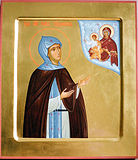 Преподобная София, в миру Соломония, великая княгиня, была дочерью боярина Юрия Константиновича Сабурова. В 1505 году на нее пал выбор наследника престола, будущего великого князя Василия Иоанновича. Брак их не был счастливым, так как Соломония оказалась бесплодной. Чтобы иметь наследника, великий князь Василий Иоаннович решил жениться вторично (на Елене Глинской) и 25 ноября 1525 г. велел постричь Соломонию в монахини. Насильно постриженная с именем София, Соломония была сослана под стражу в Суздальский Покровский монастырь, где подвигами изгнала из сердца мирские помыслы и всецело посвятила себя Богу. Князь Курбский называет блаженную княгиню "преподобною мученицею". В рукописных святцах она именуется как "Святая праведная княгиня София инокиния, яже бысть в Покровском монастыре девиче, чудотворница". При царе Феодоре Иоанновиче ее чтили как святую. Царица Ирина Феодоровна посылала в Суздаль "на великую княгиню Соломониду, а во иноцех Софию, бархатный покров с изображением Спасителя и святых". Патриарх Иосиф писал к Суздальскому архиепископу Серапиону о пении над Софией панихид и молебнов. Преподобная София преставилась к Богу в 1542 году. В описании Суздаля ключарь Анания приводит несколько случаев чудесных исцелений при гробнице преподобной Софии.